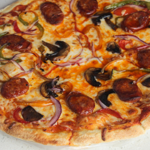 Pasta cocinada aldente bañada de salsa elaborada con pollo hongo o jamon